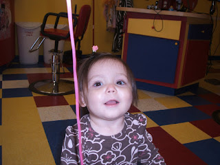 I went to get a pedicure the other day while Emily was with me. She had sat on my lap during pedicures many times before, but that was when she was quite younger. I went this time armed with a bag full of toys and goodies, hoping to keep her entertained. When I was picking out my color, I picked out one for her too. I thought that maybe I could paint Emily's toes while the lady was painting mine-just to keep her occupied. Well for whatever the reason (maybe a language barrier-I don't know!). The lady went ahead and painted Emily's toes before she painted mine. I had never seen Emily sit so still before. She sat and stared as her toes were getting painted. It wasn't just the quick one coat that I would've done either. She got the whole she-bang! Now she'll just point to her 'pretty toes' and say flower, flower. It's so cute to see her little pink toes as she's running around-oh so cute!